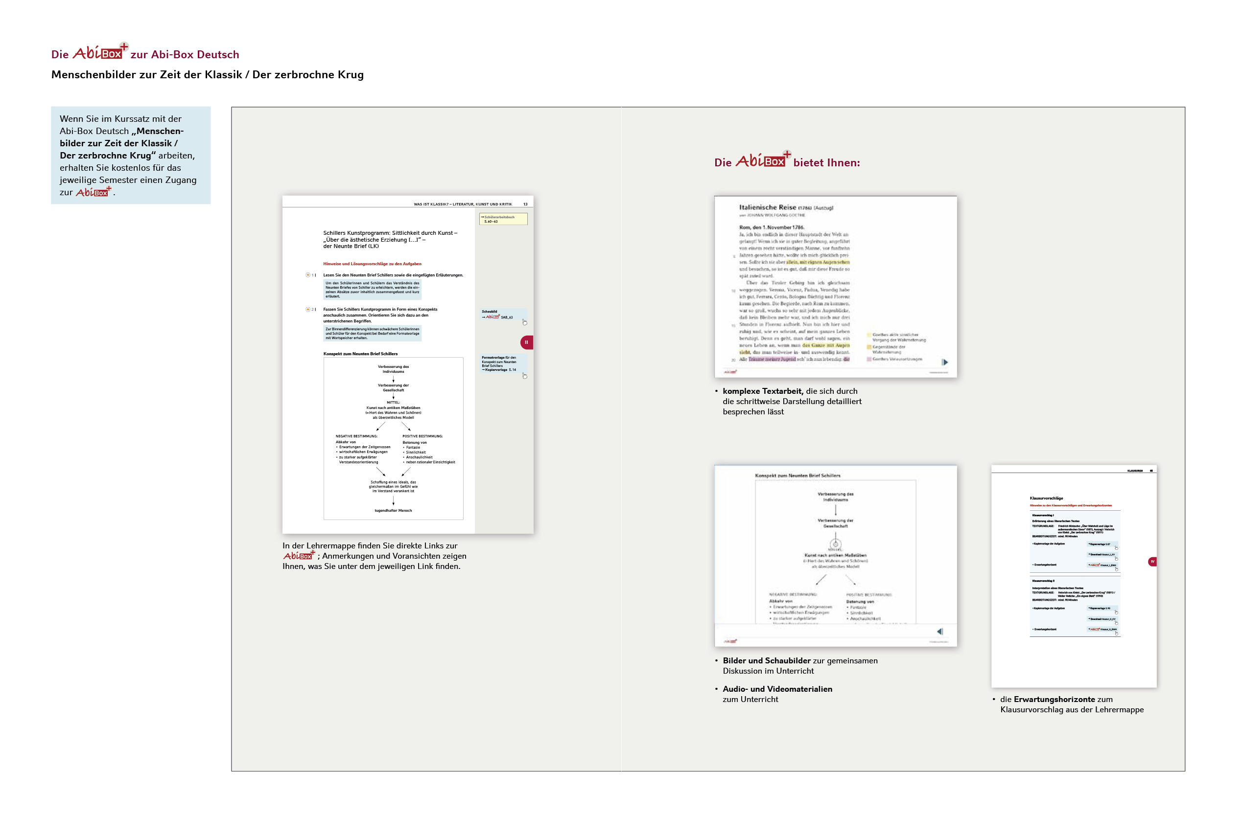 Für gelenkte Unterrichtsgespräche erhalten Kurssatzbesteller der Abi-Box Deutsch automatisch einen kostenfreien Zugang zur mit zusätzlichen digital aufbereiteten Materialien: