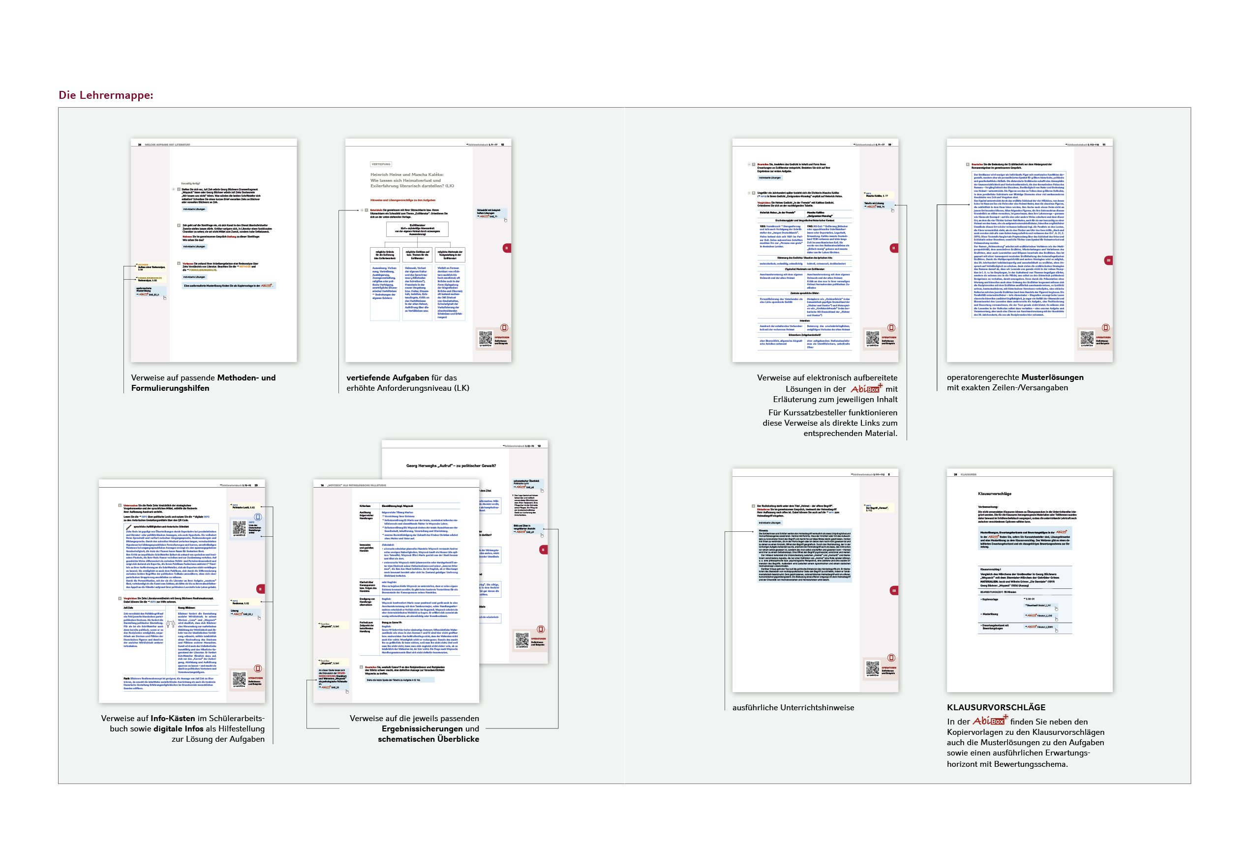 - die Kopiervorlagen, Musterlösungen, Erwartungshorizonte und Bewertungsbögen sämtlicher Klausuren zur Abi-Box,