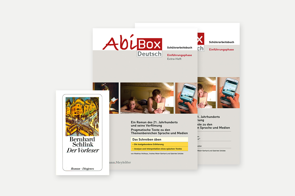 Die Abi-Box Deutsch für das 2. Halbjahr der Einführungsphase nimmt die Erarbeitung des Romans „Der Vorleser“ von B. Schlink in den Fokus. Es wird die Analyse und Interpretation eines epischen Textes geübt und im Anschluss mit der Verfilmung von Stephen Daldry vergleichend besprochen. Durch die Behandlung des verbindlichen Themenbereichs „Sprache und Medien“ führt die Abi-Box Deutsch auch in die Analyse und Erörterung pragmatischer Texte ein.